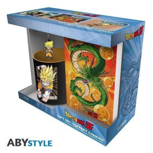Darčeková sada Dragon Ball, ktorá obsahuje kľúčenku, zápisník a hrnček.