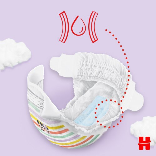 Plienky HUGGIES® Little Movers zaistia celodenné pohodlie a sucho vďaka super mäkkým absorpčným vrstvám a kanálikom, ktoré rovnomerne rozvádzajú vlhkosť, aby sa znížili objem a lepšie padli. Dvojnásobná ochrana proti úniku vrátane špeciálneho chrbtového vrecka proti pretečeniu poskytuje až 12 hodín ochrany vo dne alebo v noci, a to aj pri aktívnom pohybe. Pružný pás a dvojité manžety proti pretečeniu zaisťujú lepšiu priľnavosť a príjemnejšie nosenie. Priedušné materiály umožňujú cirkuláciu vzduchu a pomáhajú tak udržať pokožku dieťaťa v suchu. Mäkké vankúšiky absorbujú tekutinu v priebehu niekoľkých sekúnd.