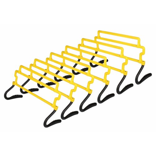 Súprava šiestich nastaviteľných prekážok Hurdle v praktickom obale pre jednoduché uskladnenie a prenášanie. Nastaviteľná prekážka Merco Hurdle je univerzálna tréningová pomôcka, ktorá nájde svoje uplatnenie pre kondičné cvičenie takmer vo všetkých športových odvetví. Skladacia prekážka je vyrobená z polyetylénu s vysokou hustotou. Pre väčšiu variabilitu cvičenia je možné jej výšku nastaviť na tri rôzne úrovne – 14 cm, 24 cm alebo 29 cm. Šírka prekážky je 44 cm a jej hmotnosť približne 380 g. Je vhodná na použitie v telocvičniach aj vonku počas letnej prípravy.