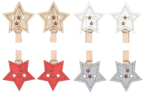 komponenty na zdobenie Hviezda drevená na kolíčku 4,5 cm 8 ks
