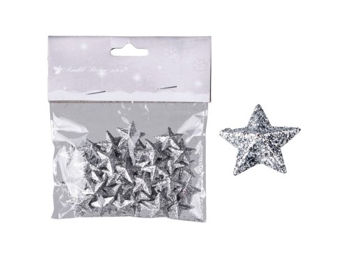 Hviezdičky s glitrami 50ks 20 mm strieborné