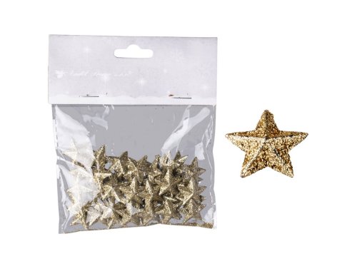 Hviezdičky s glitrami 50ks 20 mm zlaté