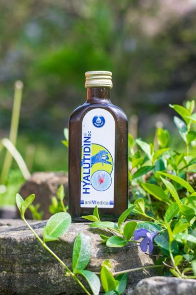 Hyalutidín DC Aktiv - Tonikum s Hyaluron-Chondroitin-Komplexom. Kĺbová výživa pre psy a mačky - aktívna sila pre zdravý pohybový aparát všetkých plemien psov a mačiek - k pohode aj stabilným maximálnym výkonom. Zloženie: V 100 ml: roztok farmaceuticky čistej vody s Hyaluron - Chondroitín - Komplexom (HCK) 2 500 mg, invertný cukor 45 g. Prídavné látky: vitamín E 50 mg, konzervant sorbát draselný (E202). Energetická hodnota v 100 ml: 820kJ/195kcal. Odporúčané dávkovanie: