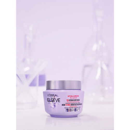 Maska poskytuje vlasom okamžitú intenzívnu hydratáciu, zanecháva ich vyplnené, 10x viac hydratované až po dobu 72h* a bez zaťaženia. Obsahuje kyselinu hyalurónovú, ktorá sa nachádza prirodzene v tele, je schopná viazať až 1000x viac vody, než sama váži a pomáha vlasom znovu dodať hydratáciu.** Inštrumentálny test na šampóne + balzame