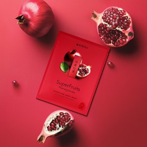 Vegánska plátienková maska SuperFruits Granátové jablko hydratuje, osviežuje a dodáva pleti energiu. Obsahuje granátové jablko (1%) s vysokým obsahom antioxidantov a trehalózu, ktorá pomáha udržať vlhkosť a chráni pleť pred vysušovaním. Jemné lyocellové plátienko perfektne priľne, chladí a zanecháva pokožku príjemne sviežu.