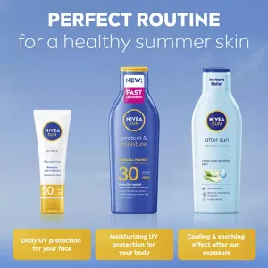 Hydratačné mlieko na opaľovanie poskytuje okamžitú ochranu pred spálením a predčasným starnutím vplyvom slnečného žiarenia. Znižuje riziko vzniku slnečných alergií a je vodeodolné.