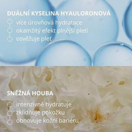 Hyaluronic Moisture Serum Drops poskytujú 24-hodinovú intenzívnu a viacstupňovú hydratáciu vďaka duálnej kyseline hyalurónovej a snežnej hube. Fermentačne získaná kyselina hyalurónová v stredne a vysokomolekulárnej forme (0,2 %) pôsobí v hlbších vrstvách aj na povrchu pleti, čím efektívne obnovuje jej vlhkosť a pružnosť. Snežná huba (Tremella fuciformis), bohatá na adaptogénne polysacharidy, napodobňuje a posilňuje účinok kyseliny hyalurónovej, upokojuje a podporuje regeneráciu pokožky. Sérum je ideálne pre dehydratovanú, unavenú pleť s oslabenou kožnou bariérou. Okamžite osviežuje, zjemňuje a navracia pleti plnosť a zdravý glow. Weleda Booster Serum Drops kombinujú vysoko účinné rastlinné extrakty, inovatívne aktívne látky a vedeckým výskumom podložené zloženie, ktoré sa prispôsobí vašej pleti presne podľa jej aktuálnych potrieb. Vďaka koncentrovanému zloženiu ich môžete ľahko miešať, vrstviť alebo kombinovať pre dosiahnutie cieleného efektu, či už vaša pleť volá po hydratácii, upokojení alebo jednoducho potrebuje dodať svieži glow!