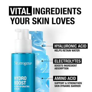 ÚČINNÉ ZLOŽKY ■ kyselina hyalurónová pomáha zadržať vodu v pokožke a zvýšiť jej hydratáciu ■ aminokyseliny známe tým, že podporujú a posilňujú kožnú bariéru ■ elektrolyty známe tým, že zlepšujú vstrebávanie hydratačných látok Toto ľahké, rýchlo sa vstrebávajúce sérum kožu a podporujú proces hydratácie pokožky – kyselinu hyalurónovú, aminokyseliny a elektrolyty. Je vedecky dokázané, že Hydro Boost Ultrahydratačné sérum okamžite dodáva pokožke 8x viac hydratácie* - na 72 hodín. Pre pružnú, sviežu pleť a silnejšiu kožnú bariéru. V porovnaní s neošetrenou pokožkou. VÝSLEDKY TESTOVANIA, VEDECKY POTVRDENÉ * OKAMŽITE ■ 94 % testujúcich cítilo, že pleť je hydratovaná ■ 84 % zaznamenalo, že pleť vyzerá zdravoPO 2 TÝŽDŇOV ■ 80 % vnímalo, že pleť je vyplnená ■ 95 % malo pocit, že potvrdilo nemastné zloženie & ľahkú textúru ■ 81 % súhlasilo, že sérum zanecháva pleť žiarivú** Sebahodnotenie 102 testujúcich, ktorí používali produkt dvakrát denne. Bez parfumácie. Neobsahuje oleje. Neupcháva póry. Vhodné aj pre suchú, citlivú pleť a pre pokožku so sklonom k nedokonalostiam.100 % recyklovateľná sklenená fľaštička* *okrem pumpičky