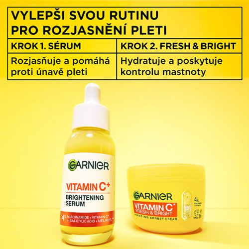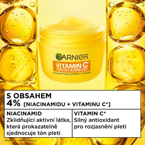 Objavte revolučný prístup k hydratácii s hydratačným krémom Vitamin C* Fresh & Bright. Jeho ľahká textúra inšpirovaná sorbetom sa okamžite vstrebáva do pleti a zaisťuje intenzívnu a dlhotrvajúcu hydratáciu. Nemastné a nelepivé zloženie je ideálne na každodenné použitie. Vďaka 6× ľahšej penovej štruktúre prináša okamžitý pocit sviežosti a prirodzeného rozjasnenia. Pleť zostáva hydratovaná a rozžiarená až po dobu 48 hodín.