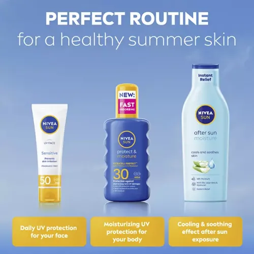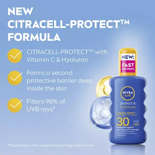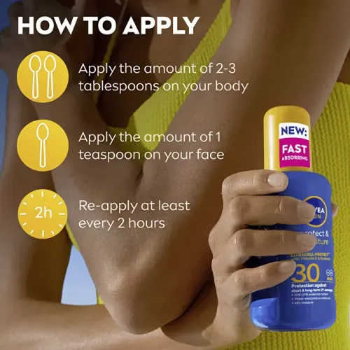 Opaľovací sprej obsahuje UVA a UVB filtre, ktoré chránia pokožku pred spálením a predčasným starnutím. Pokožku hĺbkovo hydratuje a zanecháva ju krásne hebkú.