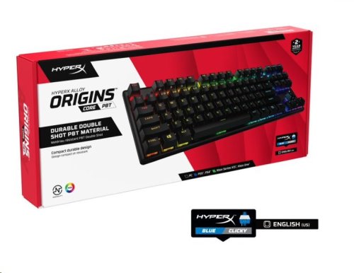 HyperX Alloy Origins PBT HX Blue – mechanická herná klávesnica HyperX Alloy Origins PBT je ultrakompaktná, robustná klávesnica bez numeriky as vlastnými mechanickými spínačmi HyperX, ktorá hráčom poskytuje najlepšiu kombináciu štýlu, výkonu a spoľahlivosti. Tento variant zvyšuje odolnosť pridaním predinštalovaných klávesov z PBT s bočnou potlačou. Mechanické klávesové spínače HyperX disponujú odkrytými LED diódami, ktoré vyžarujú viac svetla a zaisťujú oslnivejšie a pôsobivejšie podsvietenie. Navyše sa pýši rýchlou odozvou a presnosťou vďaka dokonalej kombinácii aktivačnej sily a zdvihu. Alloy Origins Core má celohliníkové telo, zostáva tak pevná a stabilná. Navyše disponuje nožičkami, ktoré ponúkajú tri rôzne úrovne náklonu. Kompaktný dizajn TKL uvoľňuje pri stolných počítačoch drahocenné miesto na pohyb myšou a zahŕňa odpojiteľný kábel USB-C pre jednoduché prenášanie. Výkonný a intuitívny softvér HyperX NGENUITY ti umožní meniť podsvietenie, vytvárať makrá a nastavovať herný režim.