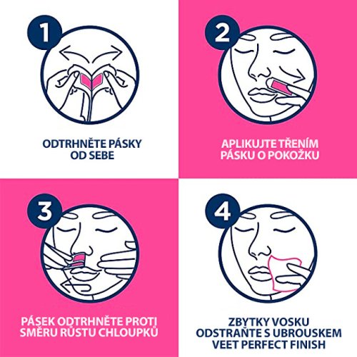 Voskové pásiky sú priehľadné a bez zápachu. - Gélové zloženie s technológiou Easy-Gel™ obteká a aktívne zachytí najkratšie chĺpky (1,5mm), nie pokožku. tvár je navrhnutá pre použitie na malé a chúlostivé oblasti, ako je horná pera, tváre a brada. *v porovnaní s predchádzajúcim zložením**znižuje riziko alergických reakcií