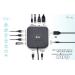 Dokovacia stanica v kompaktnom prevedení ponúka veľké množstvo praktických portov. K počítaču či notebooku sa pripája pomocou USB-C portu s podporou Thunderbolt 3/4 a USB4 . Je tak schopná na podporovaných zariadeniach prenášať aj napájanie až 100 W. Vysokorýchlostný prístup k internetu je možné realizovať cez prítomný RJ-45 port. K dokovacej stanici je možné pripojiť tiež až tri monitory s rozlíšením 4K UHD pri 30 Hz cez rozhranie HDMI a DisplayPort . V prípade zapojenia iba jedného monitora potom ponúka rozlíšenie až 5K pri 60 Hz . Počítačoví hráči určite ocenia podporu vysokej obnovovacej frekvencie až 360 Hz (1× Full HD monitor). Pre pripojenie periférií sú prítomné tri USB 3.0 porty , dva USB 2.0 porty a dva konektory USB-C. Stanicu je možné nainštalovať aj dozadu za monitor vďaka VESA držiaku (nie je súčasťou). Poteší aj slot pre bezpečnostný zámok a vypínač dokovacej stanice pre maximálnu úsporu elektrickej energie.