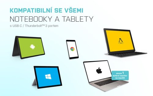 Pokiaľ pracujete s operačným systémom macOS, budete môcť pracovať s maximálne jedným externým displejom (resp. v prípade pripojenia k dvom monitorom bude na oboch premietnutý rovnaký obraz).