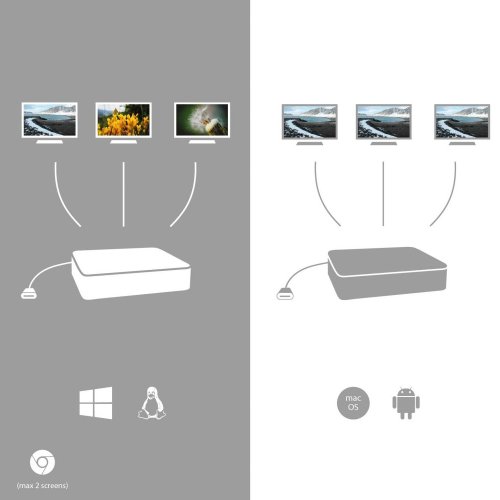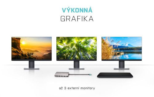 Dokovacia stanica vhodná pre užívateľov pracujúcich s 4K rozlíšením . K počítaču či notebooku sa pripája pomocou USB-C portu s podporou Thunderbolt 3 a je tak schopná na podporovaných zariadeniach prenášať aj napájanie až 100 W. Okrem možnosti pripojiť dva 4K monitory ponúka aj voľbu zapojiť až tri Full HD monitory . Vysokorýchlostný prístup k internetu je možné realizovať cez prítomný RJ-45 port. Pre pripojenie periférií sú prítomné dva USB 3.0 porty , dva USB 2.0 porty a jeden USB-C port pre dáta. Pre pripojenie slúchadiel či mikrofónu potom slúži kombinovaný 3,5 mm konektor .