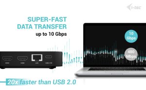 Technológia Power Delivery s výkonom až 100 W s prehľadom nabije výkonný tablet alebo notebook. Okrem HDMI je dokovacia stanica I-TEC USB-C DP Dual HDMI Dock vybavená 6 portami USB (3× USB 3.0, 2× USB 2.0, a 1× USB-C 3.2 Gen2). Vďaka tomu pohodlne pripojíte myš, klávesnicu, externý disk a ďalšie potrebné periférie. Nechýba ani Gigabit Ethernet RJ-45 na spoľahlivé pripojenie k internetu a rýchle surfovanie bez kompromisov. Pre slúchadlá alebo reproduktory je k dispozícii kombinovaný audio port s 3,5 mm konektorom. Súčasťou balenia je USB-C napájací adaptér s výkonom 100 W.