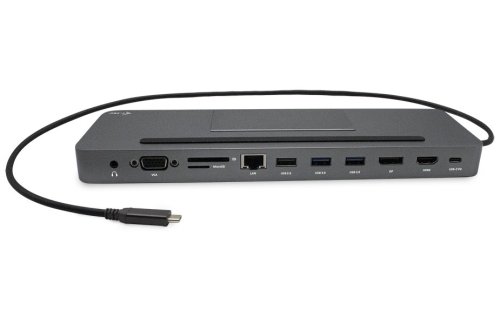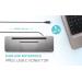 Ergonomická kovová dokovacia stanica podporujúca pripojenie až troch monitorov . K počítaču či notebooku sa pripája pomocou USB-C portu s podporou Thunderbolt 3/4 a je tak schopná na podporovaných zariadeniach prenášať aj napájanie až 85 W. Vysokorýchlostný prístup k internetu je možné realizovať cez prítomný RJ-45 port. Pre pripojenie periférií sú prítomné dva USB 3.0 porty a dva USB 2.0 porty . Pre pripojenie slúchadiel či mikrofónu potom slúži kombinovaný 3,5 mm konektor . Poteší aj slot pre SD a microSD karty . Dock je možné použiť aj ako praktický stojan pre notebook či tablet.