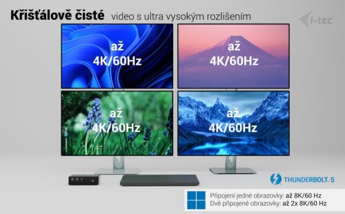 Extrémne vysoký výkon, ultrarýchly prenos dát a podpora rozlíšenia až 8K/60 Hz. Najvýkonnejšia dokovacia stanica i-tec na trhu!