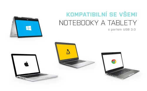 USB hub pre zariadenia s USB rozhraním ponúka rozšírenie o tri USB 3.0 porty a jeden Gigabit Ethernet port RJ-45 pre pripojenie do siete LAN. Hub má vstavanú prepäťovú ochranu pre prípad skratu na periférnych zariadeniach. Podporuje širokú škálu operačných systémov od Windows a Mac OS až po Linux.