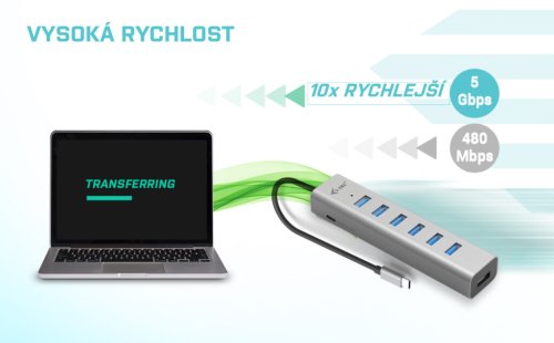 S týmto hubom získate ďalších 7 USB 3.0 portov (až 5 Gbps). Pripojte si externú klávesnicu a myš, prenášajte dáta alebo filmy z USB flash disku rýchlosťou až 5 Gbps alebo nabíjajte svoje mobilné zariadenia nabíjajte, až rýchlosťou 7.5W.