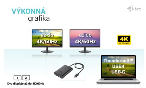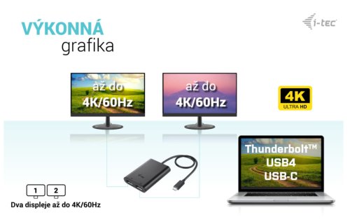 Podporované rozlíšenia: Hostiteľské zariadenie s podporou DisplayPort 1.2: • 1 monitor – 1x Display Port › až 4K/60Hz • 1 monitor – 1x DisplayPort › až QHD/144Hz • 2 monitory – 1x Display Port + 1x Display Port › až 2x 4K/30Hz