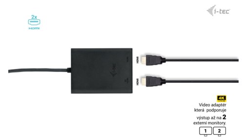 I-TEC USB-C Dual 4K HDMI; Video adaptér, ktorý umožňuje rozšírenie vašej pracovnej plochy o dva externé HDMI monitory.
