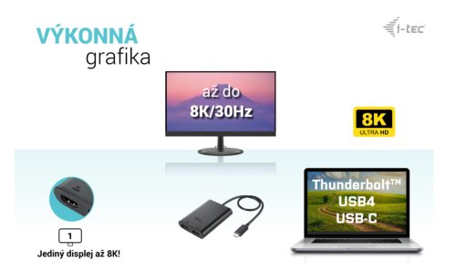 Video adaptér, ktorý umožňuje rozšírenie vašej pracovnej plochy o dva externé HDMI monitory. Pripojenie je možné jednoducho realizovať cez konektor USB-C, USB 4.0 alebo Thunderbolt 3/4 . Adaptér podporuje prenos rozlíšenia až 1× 8K pri 30 Hz alebo až 2× 4K pri 60 Hz.