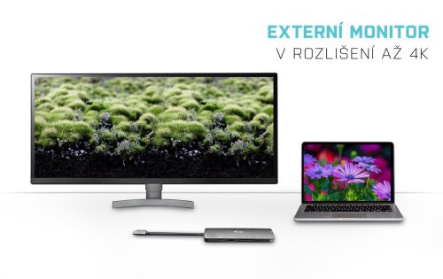 Rozšírte svoju pracovnú plochu o externý HDMI monitor alebo pripojte projektor či televízor s HDMI rozhraním. Dokovacia stanica podporuje prenos Ultra HD 4K videa s rozlíšením až 3840×2160@30Hz vrátane audio signálu.