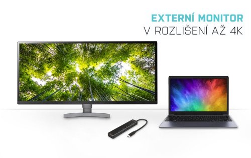 Porty: 1× HDMI, 1× USB 3.0, 1× USB 2.0, 1× USB-C (len napájanie), 1× čítačka SD kariet, 1× čítačka microSD kariet