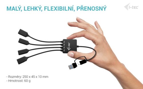 • Malý, efektívny a flexibilný USB-C/A káblový HUB • 2× USB-A a 2× USB-C porty umožňujú pripojenie rôznych periférií • Rýchly prenos dát cez USB (až 5 Gbps) • Ohybné káble pre maximálnu flexibilitu pripojenia • Kompaktné rozmery umožňujú jednoduché prenášanie – zmestí sa aj do vrecka • HUB podporuje všetky bežné moderné operačné iPadOS)