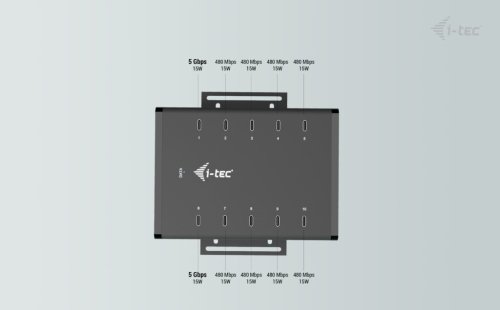 Výkonný HUB s tichým chodom vhodný na nabíjanie a prenos dát. Vďaka možnosti pripojenia cez USB 3.0, USB-C alebo Thunderbolt 3/4 port je kompatibilný so všetkými modernými notebookmi. Má k dispozícii 10 portov USB-C , z ktorých každý podporuje nabíjanie zariadenia až 15 W a prenos dát rýchlosťou až 5 Gb/s (2× 5 Gbps, 8× 480 Mbps). Ak chcete iba nabíjať, nie je potrebné HUB pripájať k počítaču. Balenie obsahuje napájací adaptér s výkonom 180 W. Samozrejmosťou je prepäťová a prúdová ochrana .