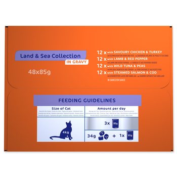 Kompletné krmivo pre dospelé mačky. Kŕmny návod: mačkám s hmotnosťou 4 kg podávajte približne 3 kapsičky za deň rozdelené najmenej do 2 kŕmnych dávok. Vaša mačka môže jesť viac alebo menej v závislosti od veku, temperamentu a aktivity.