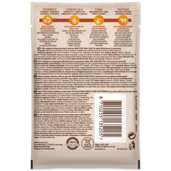 Mäso a živočíšne deriváty, ryby a rybie deriváty (4% losos), deriváty zeleninového pôvodu (0,5% repná vláknina), minerály, oleje a tuky (0,1% rybí olej, 0,05% slnečnicový olej).
