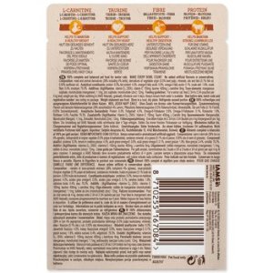 Kompletné vlhké krmivo s jahňacím mäsom v lahodnej omáčke pre staršie mačky od 7 rokov. Vysoko stráviteľné bez sóje, pšenice, umelých farbív, dochucovadiel a koncentrovaných bielkovín na rastlinnej báze kvalitné bielkoviny - správne osvalenie repnej rezne a jablká 6 mastné kyseliny - zdravá a lesklá srsť a kožavitamín E - podpora imunity Zloženie: Mäso a živočíšne deriváty, ryby a rybie deriváty (4% losos), deriváty zeleninového pôvodu (0,5% repná vláknina), minerály, oleje a tuky (0,1% rybí olej. látky:Vitamín D3: 250IU, vitamín E: 150 mg / kg.Stopové prvky:síran manganatý monohydrát (E5 - Mn): 2,2 mg / kg, síran zinočnatý monohydrát (E6 - Zn) 33,5 mg / kg.Analytické zložky:Hrubé proteíny:Hrubé proteíny: hrubé popoloviny: 1,8%, hrubá vláknina: 0,4%, vlhkosť: 79,3% Denné dávkovanie: Staršiu mačku s hmotnosťou 4 kg kŕmte denne 2,25 až 3,5 kapsičkami.