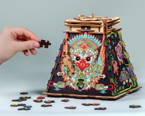 Máte radi puzzle, hlavolamy, rébusy a hádanky? A chcete niekoho blízkeho obdarovať? V tom prípade sa Vám hlavolam v tvare aztéckej pyramídy bude určite páčiť. Hlavolam spája tradičné puzzle s výzvami únikovej hry. Poskladajte správne viac ako 200 dielikov puzzle, objavte skryté stopy a vyriešte logické úlohy, aby ste otvorili mechanické zámky tejto mystickej krabičky. Už samotný hlavolam je nevšedným darčekom a navyše do vnútorného priestoru môžete vložiť osobný odkaz, šperk či inú drobnosť. Obdarovaný to však nebude mať jednoduché! Aby sa k darčeku dostal a krabičku otvoril, musí správne poskladať všetky dieliky puzzle a vyriešiť hádanky. Hlavolam je vyrobený ručne z dreva a vďaka kvalitnému a presnému spracovaniu a ilustráciám Steva Simpsona a Joaquína Nava je vhodný ako darček alebo dekorácia. Pokiaľ máte radi výzvy a zmenu, k pyramíde je možné dokúpiť ďalšiu sadu puzzlí na bočné steny a získať tak nový vzhľad Vašej nevšednej dekorácie (ID5021 alebo ID5020). Hlavné vlastnosti: vhodné ako darček alebo dekoráciadoba hry 90 až 120 minútpre 1 až 2 hráčovs vnútorným priestorom pre vloženie drobného darčekavyrobené ručne z dreva ilustrácie Steva Simpsona a Joaquína Nava