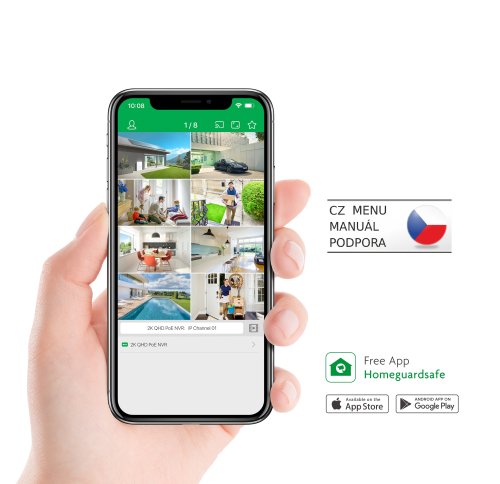Jednoduché nastavenie a podpora hlasového ovládania Nastavenie prebieha v niekoľkých jednoduchých krokoch podľa manuálu, ktorý je kompletne v českom, slovenskom a anglickom jazyku. Obraz z kamier je možné sledovať na počítači, smartfóne a tablete. Pre mobilné zariadenia sú podporované systémy Android a iOS, pre počítač potom Windows a MacOS. Veľmi jednoduché je tiež nastavenie mobilného prístupu pomocou oskenovania QR kódu do smartfónu/tabletu, prepojenie je hotové behom niekoľkých sekúnd. Systém podporuje hlasové ovládanie Google Assistant a Amazon Alexa.