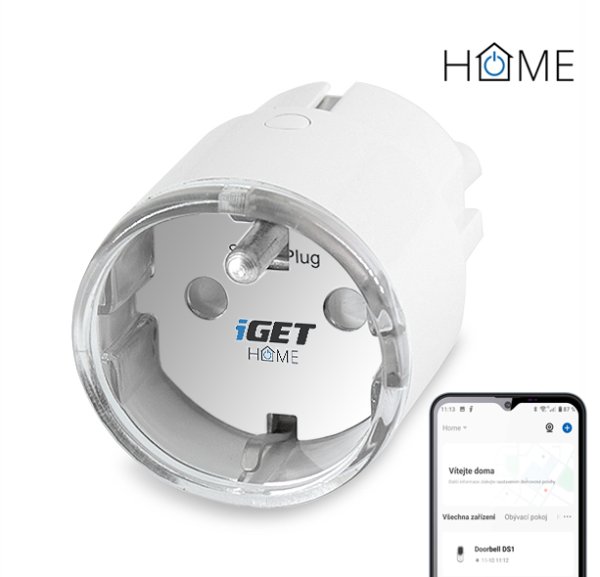 iGET HOME Power 1 - Smart WiFi zásuvka 230V s meraním spotreby Chytrá zásuvka ovládaná cez WiFi, kompatibilná s aplikáciou iGET HOME, Google Assistant a Amazon Alexa, meranie spotreby energie, max. zaťaženie 3680 W, aplikácia pre Android a iOS zadarmo v češtine, nastavenie časovačov, štatistiky.