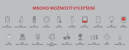 1x EP1 – bezdrôtový pohybový PIR senzor na zaistenie miestnosti.