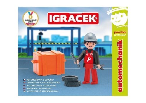 Ty a Igráček automechanik = šikovná dvojka. Vezmi skrutkovač, lievik, kanister, "francúzak" a hor sa do opravovania áut. Hračka rozvíja jemnú motoriku a fantáziu detí. Legendárna postavička od roku 1976. Vyrobené v Českej republike.