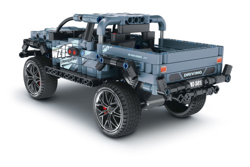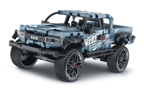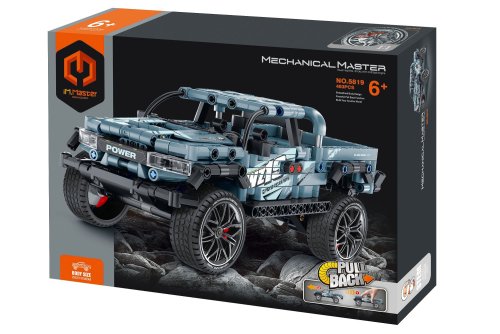 iM.Master Stavebnica auto s korbou. Rozmery 23,2x11x10,2 cm. 463 dielikov. Na spätné natiahnutie. Otváracie dvere, fungujúce zadné tlmiče.