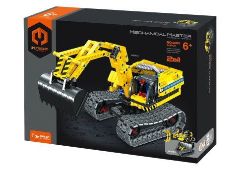 iM.Master Stavebnica bager robot 2v1. Rozmery 31x14x16 cm. 342 dielikov. Možnosť postaviť bager alebo robota. Otáčacia základňa a pohyblivé naberacie rameno.