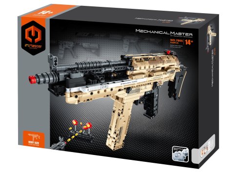 iM.Master Stavebnica guľomet strieľajúce. Rozmery 47,4x7,3x27 cm. 939 dielikov. Súčasťou 22 nábojov, terč. Poistka spúšte, náboje do zásobníka, naťahovacie nabíjanie.