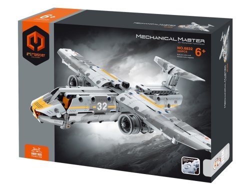 iM.Master Stavebnice lietadlo vojenské. Rozmery 37,5x30,2x11 cm. 329 dielikov. Vyklápacia nákladová plocha, otočné vrtule.