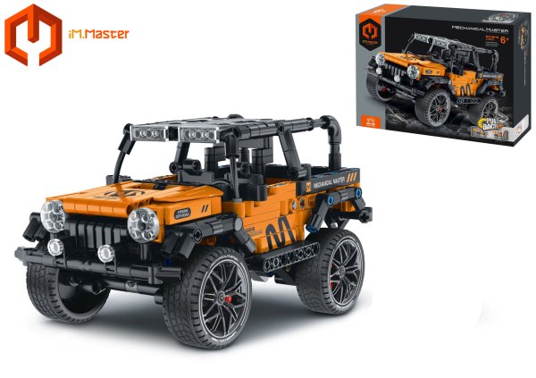iM.Master Stavebnica terénne auto. Rozmery 20,3x11x11,2 cm. 434 dielikov. Na spätné natiahnutie. Otváracie dvere, fungujúce zadné tlmiče.