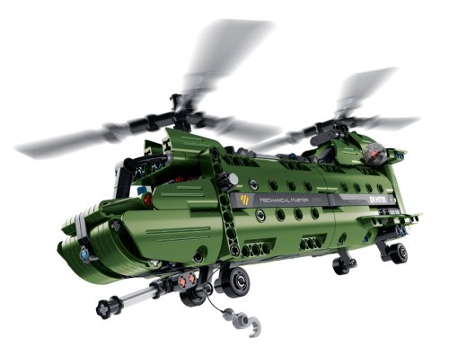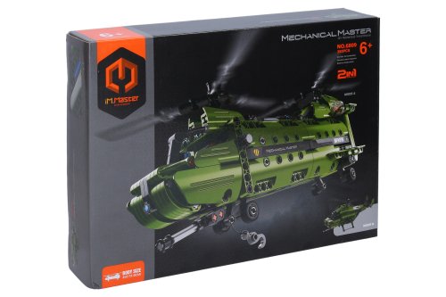 iM.Master Stavebnica vrtuľník 2v1. Veľkosť vrtuľníka s dvoma vrtuľami 34x17x12 cm, vrtuľníka s jednou vrtuľou 30x17x13 cm. 393 dielikov. Je možné zostaviť dva rôzne modely vrtuľníka z jednej sady dielikov. Zložený model má manuálne pohyblivé časti (vrtuľa, navijak, otáčanie dela).