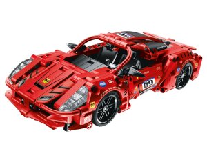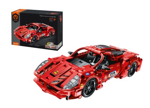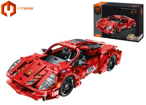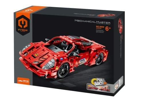 iM.Master Stavebnica závodné auto červené. Rozmery 25x11,4x6,6 cm. 437 dielikov. Na spätné natiahnutie. Otváracie dvere.