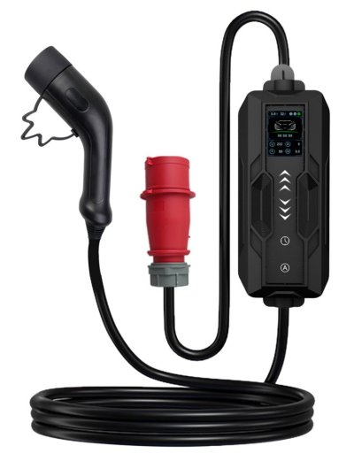 Nabíjačka je vybavená 5metrovým káblom s konektorom CEE (červená zástrčka – 3 fázy) a zástrčkou Type 2, ktorá je štandardom u väčšiny európskych elektromobilov.