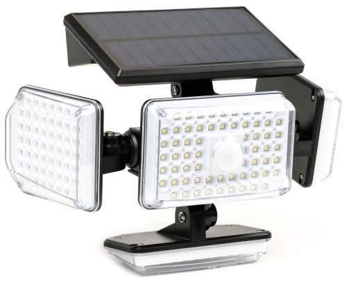 Vonkajší LED reflektor s výkonom 5 W zaistí osvetlenie vonkajších priestorov a budov v miestach, kde nie je možný prívod elektrického prúdu. Osvetlíte si napríklad aj príjazdovú cestu pred garážou bez nutnosti kosenia kabeláže do fasády domu. Reflektor pracuje v 3 voliteľných režimoch a má tri pohyblivé ramená , vďaka ktorým osvieti priestor pred sebou, pod sebou aj po stranách v uhle 360 ° . Bočné ramená aj spodné rameno sú otočné aj sklápacie o 160 °. Napájanie je zaistené solárnym panelom , ktorý počas dňa ukladá energiu do 2400 mAh Li-Ion vstavanej batérie. Vďaka senzoru pohybu sa svetlo automaticky aktivuje aj deaktivuje.