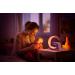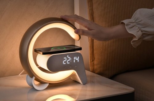 Netradičná LED stolná lampička s praktickým digitálnym displejom as efektným RGB podsvietením . Ponúka teplý odtieň svetla a plynulé stmievanie. Táto lampička je ideálna do detských izbičiek vďaka možnosti prehrávania šiestich rôznych prírodných zvukov či bieleho šumu na večerné upokojenie. LED displej disponuje možnosťou stlmenia aj úplného vypnutia. Pre prehrávanie hudby z mobilného zariadenia bez nutnosti pripojenia kábla je pripravený Bluetooth reproduktor . K dispozícii je navyše aj duálny budík pre dva rôzne časy prebudenia, bezdrôtová nabíjačka štandardu Qi a nabíjací USB port na nabíjanie mobilných telefónov.