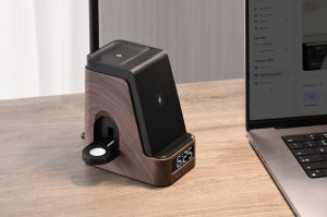 Integrovaná bezdrôtová nabíjacia plocha Qi podporuje súčasné nabíjanie telefónu, bezdrôtových slúchadla typu AirPods a chytrých hodiniek. Dodatočný USB port rozširuje možnosti nabíjania ďalších zariadení.